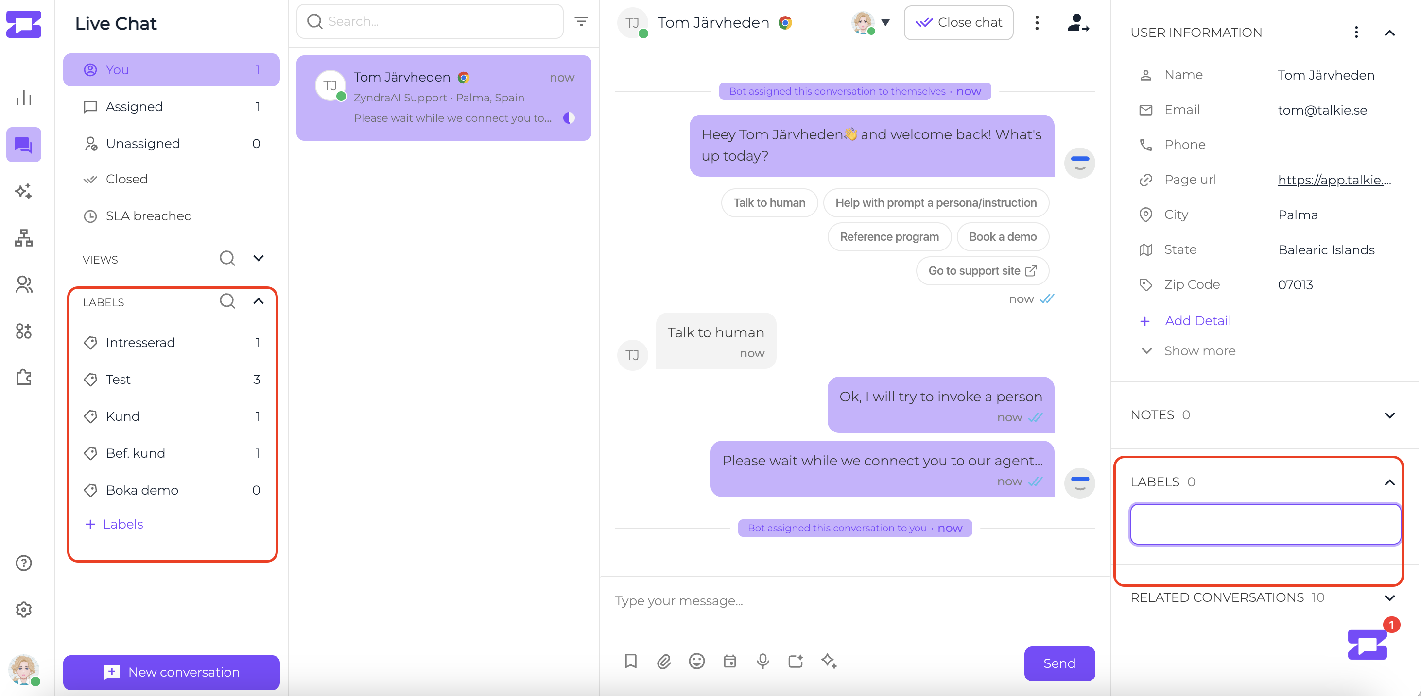 You can either create a label from the left panel OR type the label name in the right panel to create and add a label to a chat.